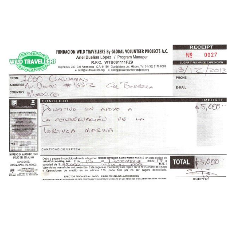 Esta ha sido nuestra primera aportación, por un total de: $5,000 que se utilizaron en gasolina para patrullar y materiales para el campamento.